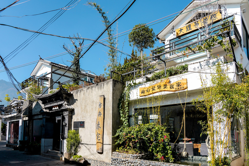 一个拐弯就看到“大理等着你”“此心安处是我家”,蓝天白云下,白色的三层小楼,真的是到家了的感觉,还没有看到方舟沐宅几个字,就心之所向的朝这里走来。
