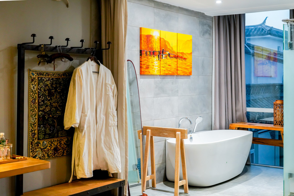房间空间蛮大的,布置的很温馨,窗前有一个大大的浴缸,非常喜欢这个浴缸,玩了一天回来还是挺累的,能在浴缸里好好的泡个澡放松一下,特别的舒服。
