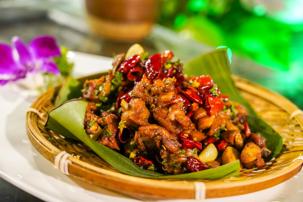香草柠檬鸡,店里的招牌菜,必点NO1,鸡肉切成小块,很入味,特别的香草味,再加上干辣椒,焦香四溢,回味无穷,很适合四川人的口味。