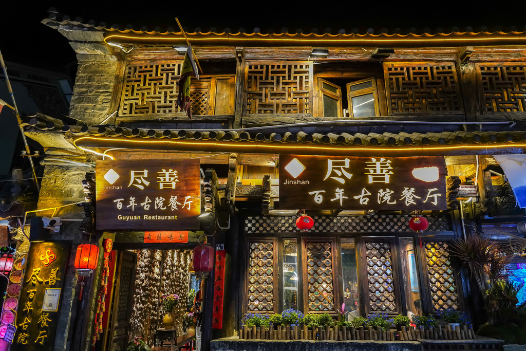 晚餐时间到啦,回到大理古城闲逛,华灯初上,夜色阑珊,这时的古城已经和白天是完全两个样子了,白天温柔安静,晚上突然就热闹了起来。