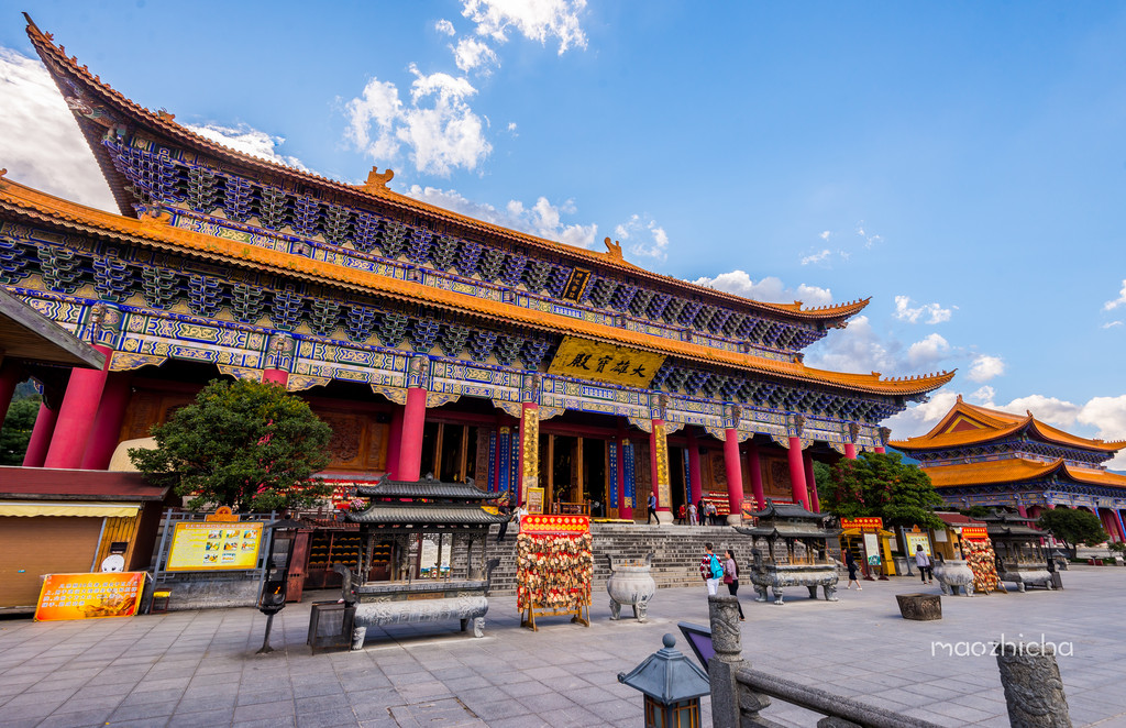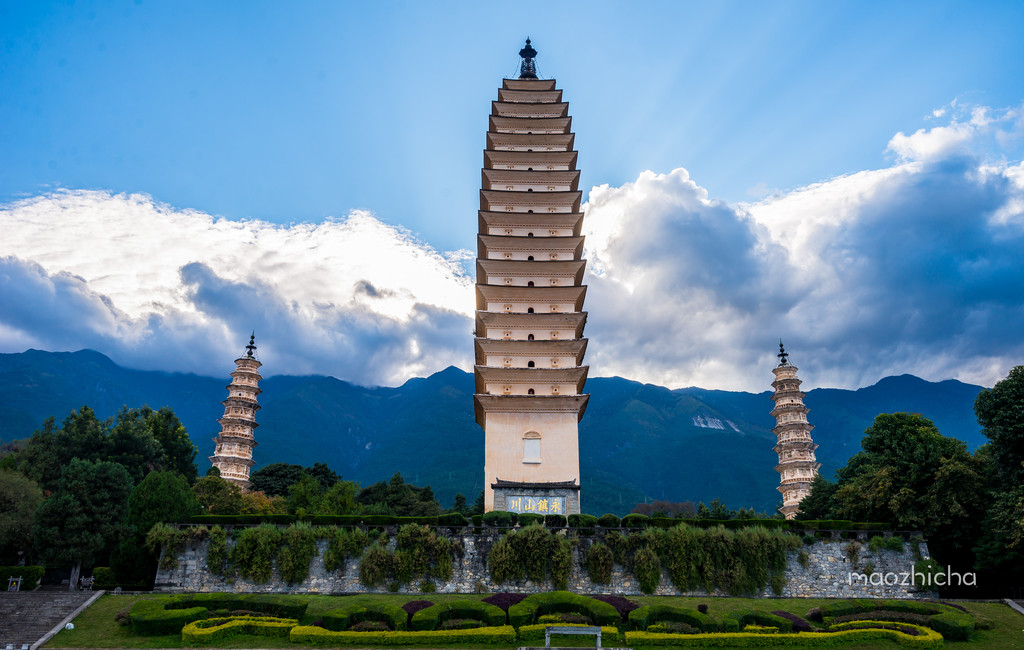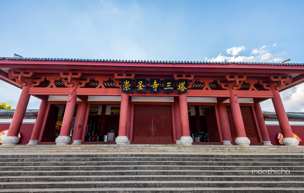 游览三塔最佳的方式,是进入景区后,现在乘坐电瓶车到达山顶的重点,也就是崇圣寺的大雄宝殿所在的位置,然后再沿着寺中的台阶慢慢向下游览,最后到达三塔。