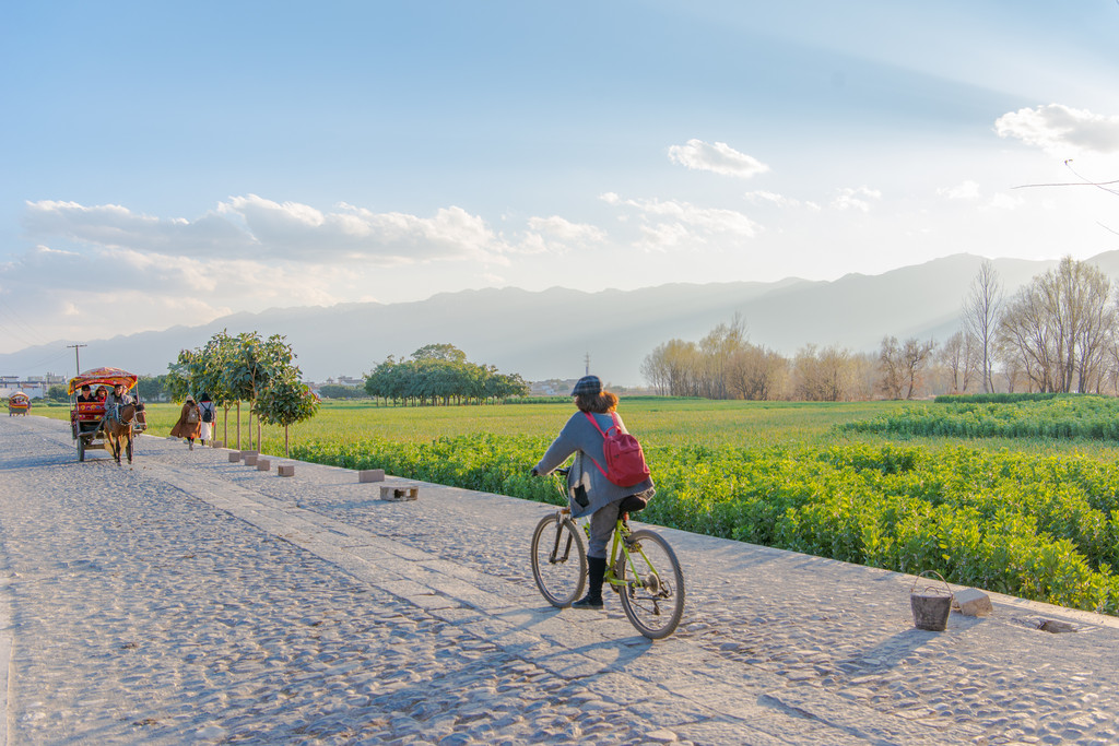 喜洲位于大理的北部,西倚苍山,东临洱海,喜洲是大理文化的发祥地之一,很早以前就是白族的聚集地,喜洲古镇是南诏古城中留下了的古城之一,已有上千的历史,它也是电影“五朵金花”的故乡,所以,这里是感受白族风情最好的地方。