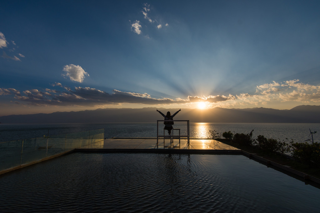 太阳余晖的照射下,似乎感觉整个世界只剩下这美景和我们,伸开双臂拥抱着美好的一切,让这一刻永远的烙在我的心上。