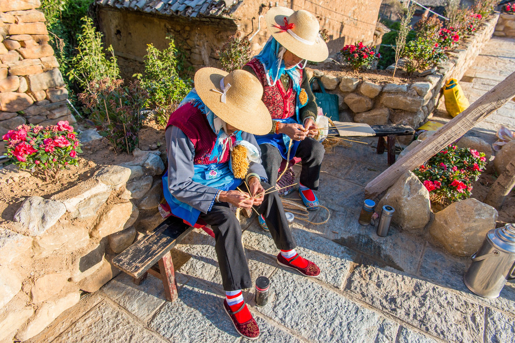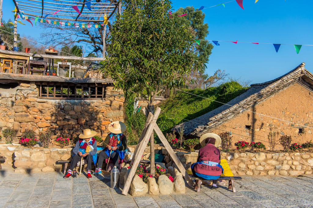 凤阳邑以前还因草帽交易兴盛而被当地人称“草帽街”,现在每天都仍然有白族的老奶奶在村中的小广场上编织草帽,老奶奶看到我非常热情的和我打招呼,还问我从哪里来的,脸上挂着幸福而满足的笑容,有时间的话可以就坐在老奶奶身边和她们聊聊家常,应该可以听到很多有趣而动人的故事。