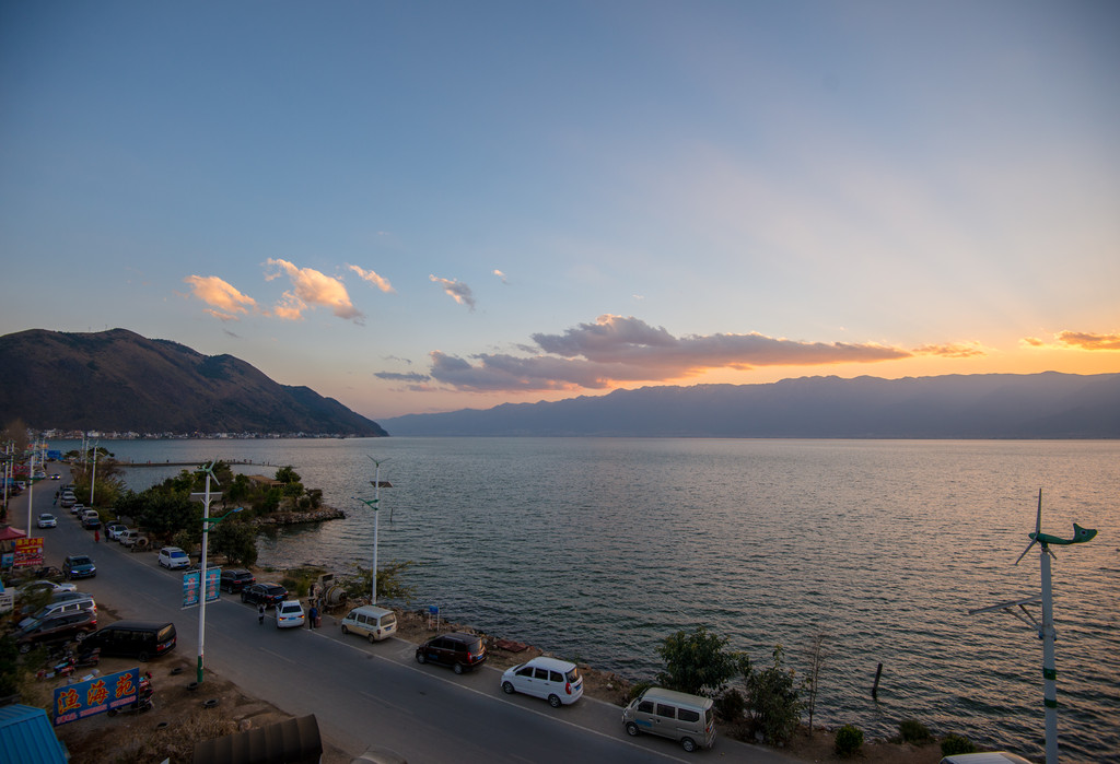 挖色除了比大理古城、双廊更原生态更安静之外,还有两个最大的优势,第一,每年冬天,从西伯利亚飞来到洱海来过冬的海鸥很多会集中在挖色镇,但是今年感觉少了些;第二,这里位于洱海东岸,是洱海边欣赏日落的最佳位置。