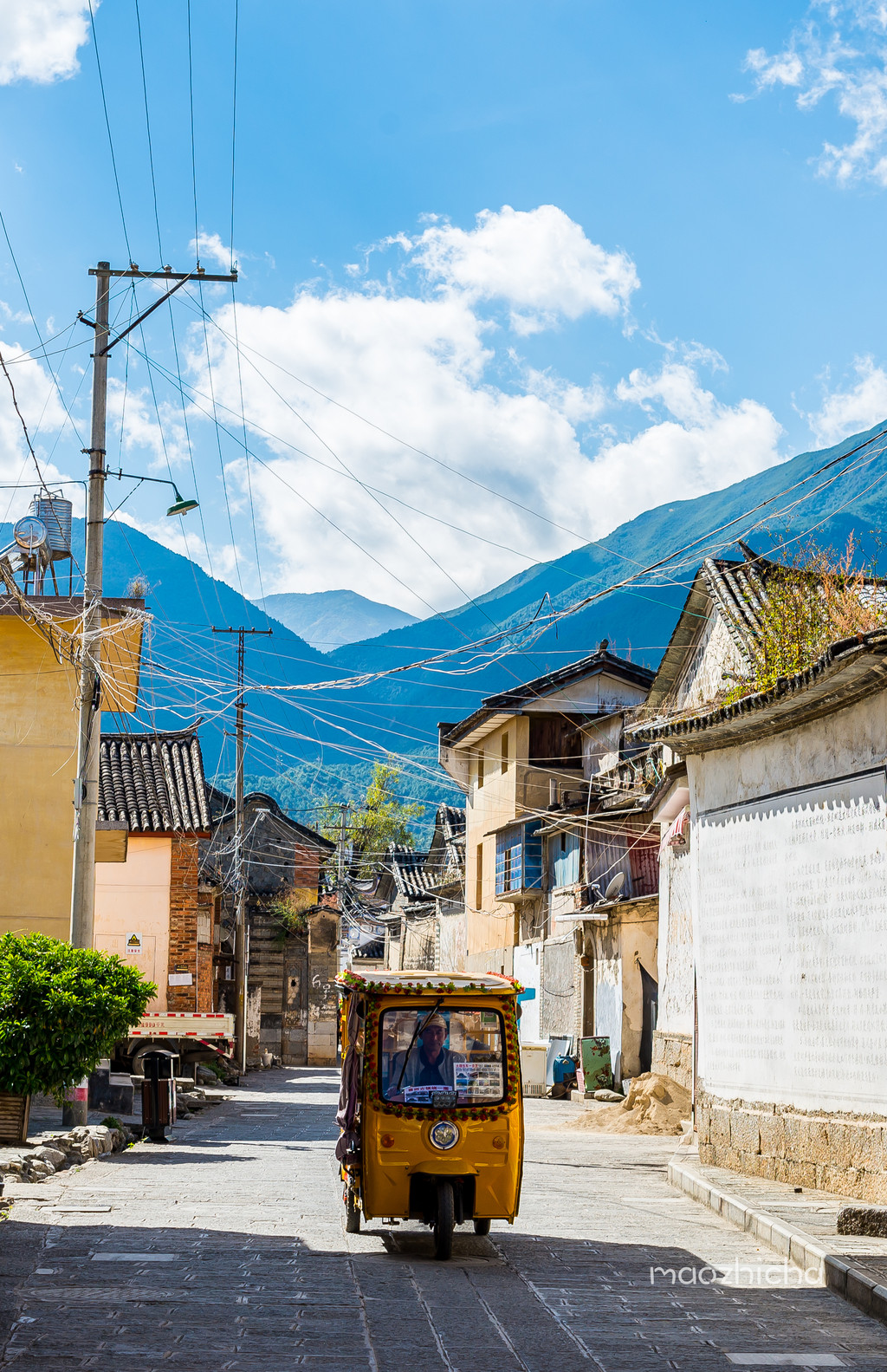 喜洲古镇的核心区域依然依然被称为四方街,只是规模不算大,但整个古镇还是挺大的,所以可以坐一个这种当地居民开的小黄车,10元,价格很便宜,当然他期间会带你去一些根雕店、刺绣店、茶店之类的,其实也没什么,毕竟10元太便宜,别人也是要赚钱养家的,你不买就行了,就当让他拉你在古镇逛一圈,看到有兴趣的地方也可以让他停下来你拍照。