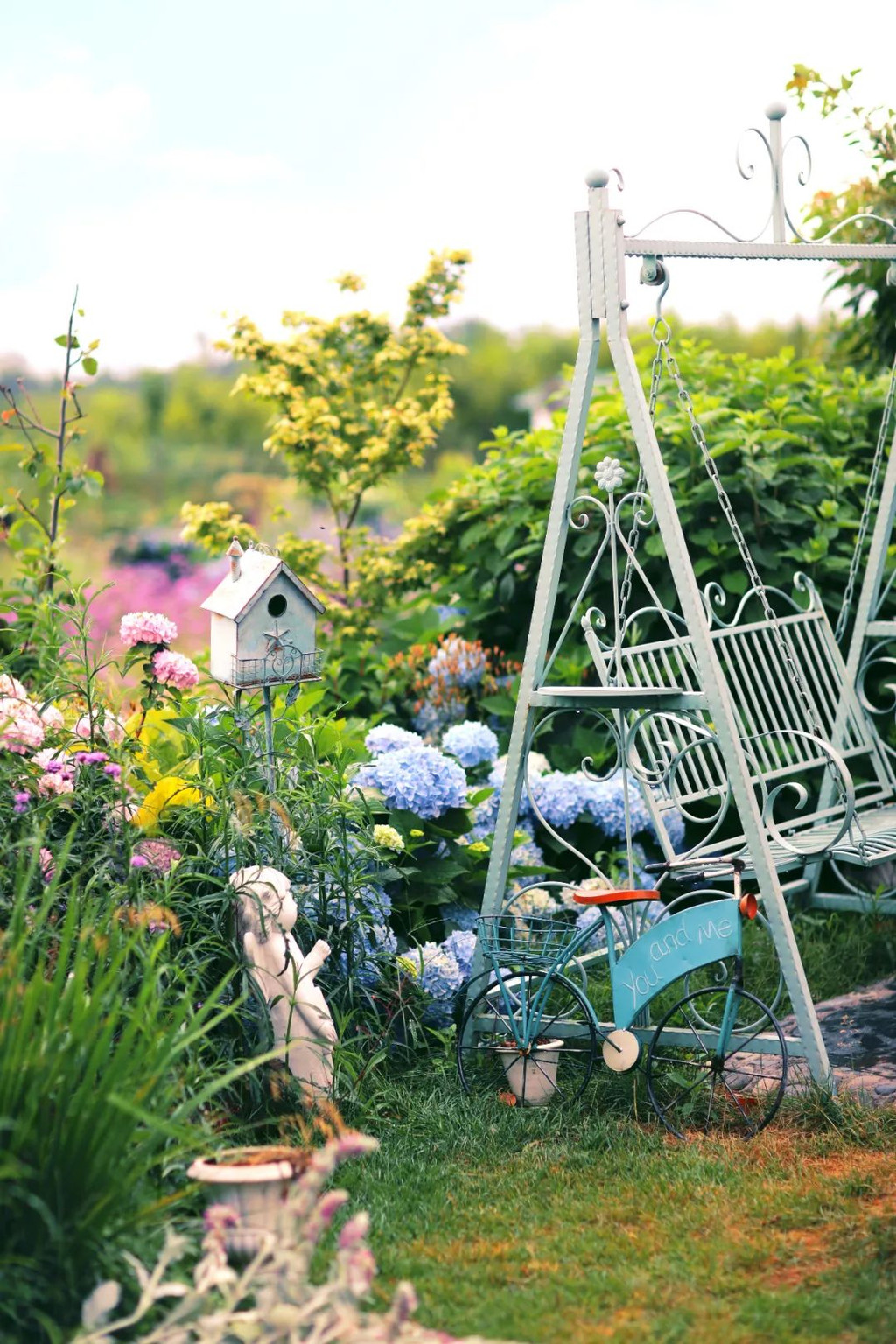 猫米花园的每一处,角角落落都如一幅画。一个凳子,一处秋千都装饰的很到位。