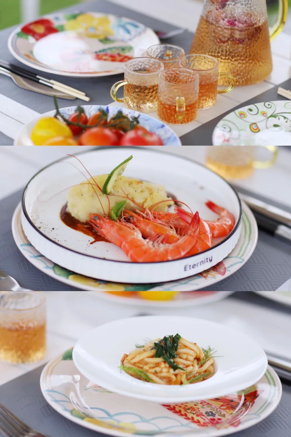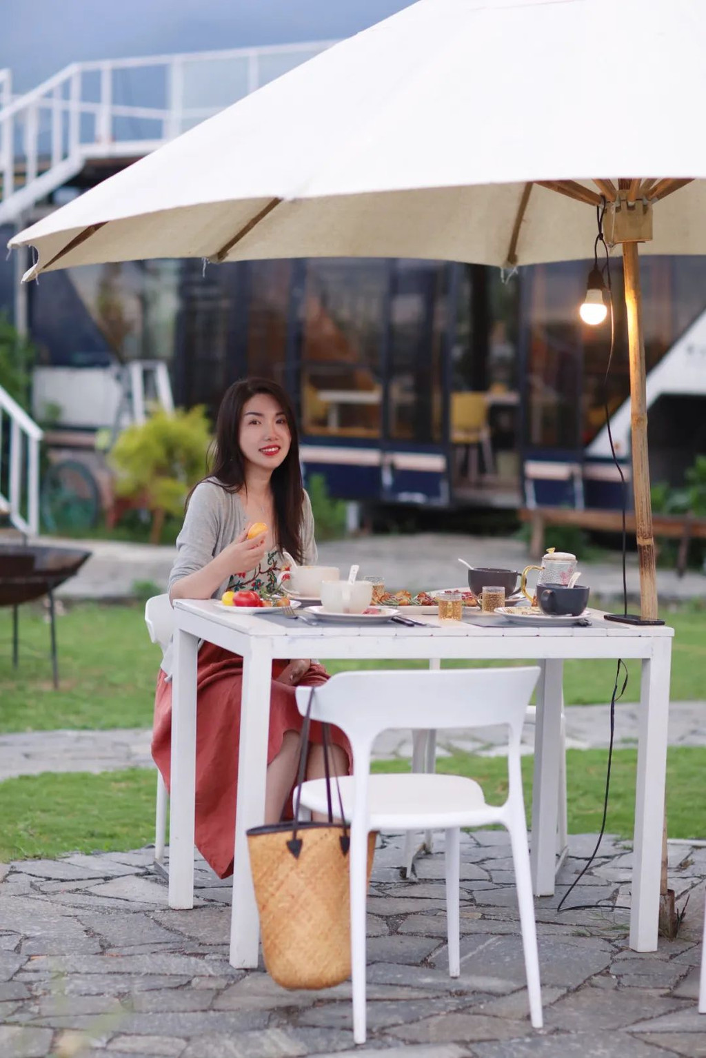 上菜的服务员是在这里干活的当地农民,非常的淳朴。明理花园的餐盘餐具,都选的很有品味。