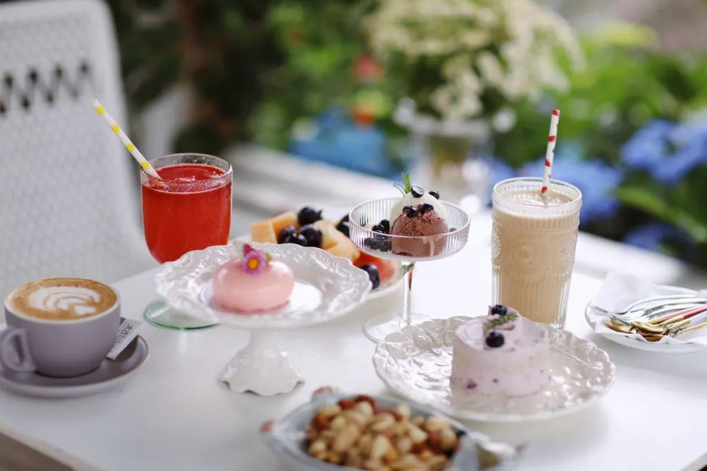 在猫米花园的白色木屋里,预订了一个四人下午茶。