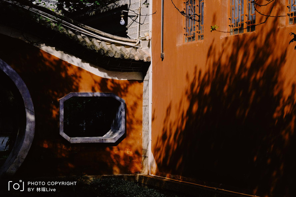博物馆内朱红色的墙面使人感到非常古朴,也被叫做“故宫红”,尤其是有阳光照射进来,树影婆娑,充满诗意。