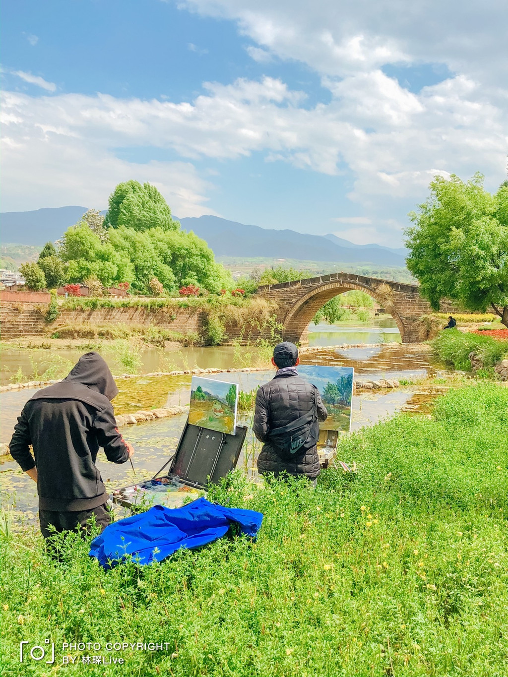 玉津桥也是美术生、艺术从业者理想的写生之地,每天都有来这里画画的人。