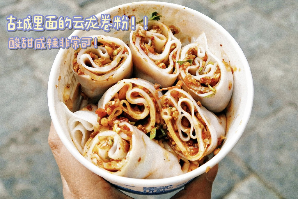 云龙 卷粉是 大理云龙 的名小吃,我是在复兴路买的,卷粉糯叽叽超Q弹,十块钱一份也不贵,酸甜咸辣还有花生碎之类的口感很丰富~