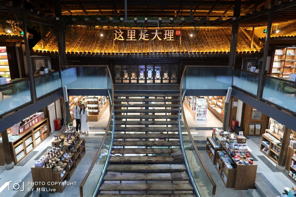 书店的中心区域是最好看的尤其是一楼通往二楼的楼梯,来这里必打卡。二楼上面的几个标志性的大字“这里是 大理 ”,让人感受到了来自 大理 的热情。