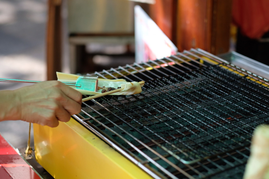 它可以生吃、煎吃、烤吃、凉拌吃, 云南 十八怪里说的:“牛奶炸着吃”,其实就是说的乳扇,图中是在街边买的烤乳扇~