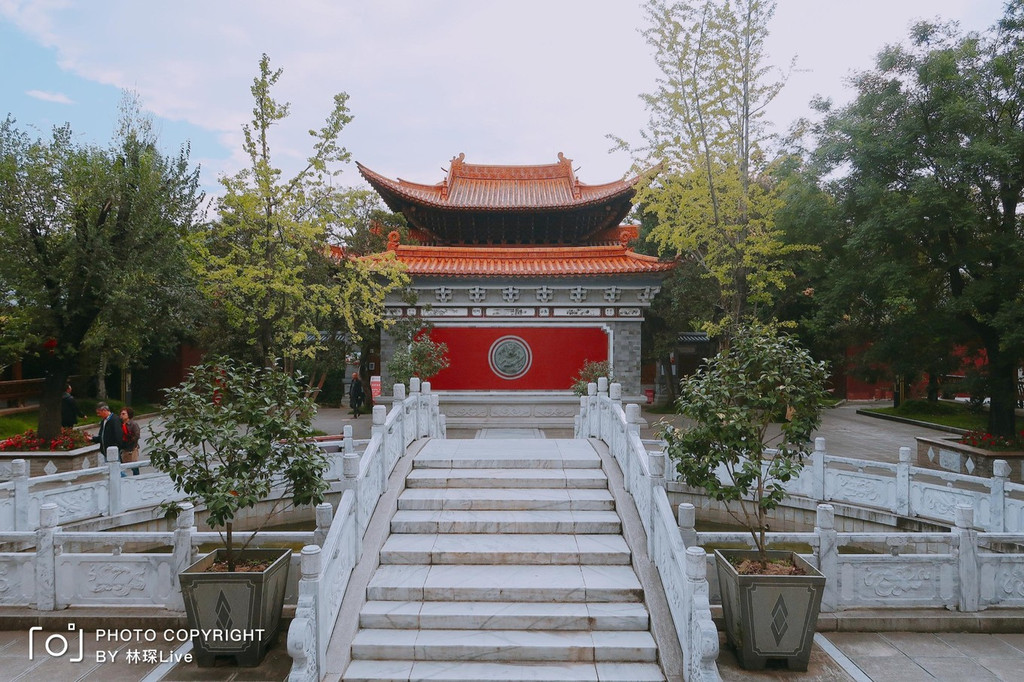 在大理古城里,沿着主路复兴路走,你会看见一个飞檐斗拱的建筑,它就是大理文庙了。