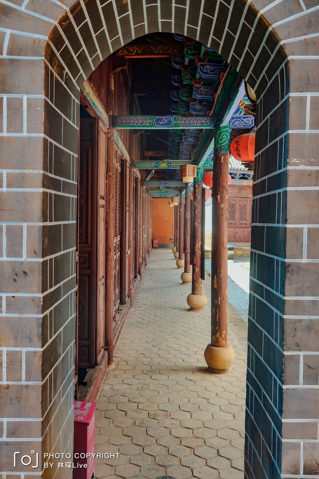 门的这一边是一个较为开阔的空地,透过门往里看则是一处幽深的巷子,让人感到好奇。