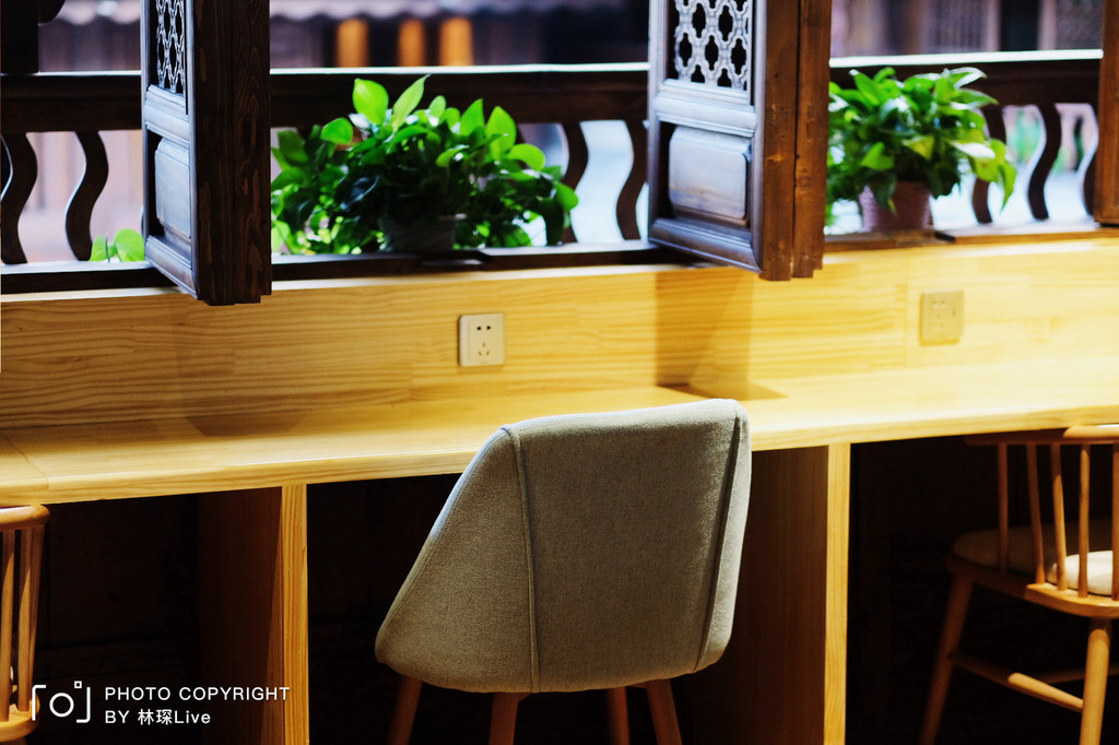 有诗意的窗户,木质的书桌,明亮的灯光,氛围挺不错。