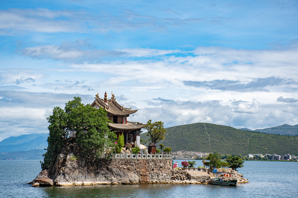 环岛游览可以见到所有的小岛,乘坐游船游览则可以看到洱海中名气最大的南诏风情岛,还可以登岛游览。