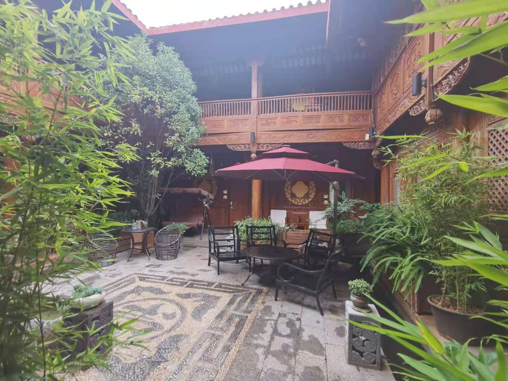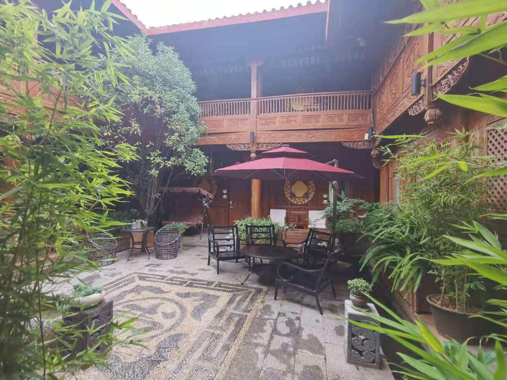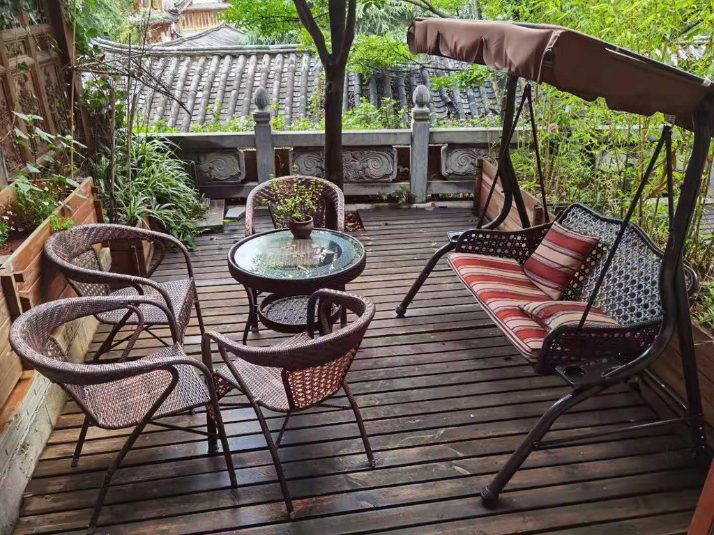 13:00到达丽江古城的逸舍客栈,办理入住。这家客栈必须介绍一下,位置非常好,丽江古城内有数百家客栈,这家位于古城北门口,出行或去古城都非常方便,因为不在古城内,所以特别安静,且拉行李不累(古城都是石板路,里面密密麻麻的客栈根本分不清哪家)。房间都设计的很有小心思,我们这次订了花园露台房和豪华景观套房,绝对物超所值,客栈内古色古香,有两只孔雀+1条狗,小零食+矿泉水无限量供应,但凡空闲小哥哥都会热情邀请你到大厅泡茶给你喝,有任何需求小哥哥都会第一时间尽量满足,老公到丽江古镇后出现高反,小哥哥热情跑前跑后给泡红糖水,非常感动;