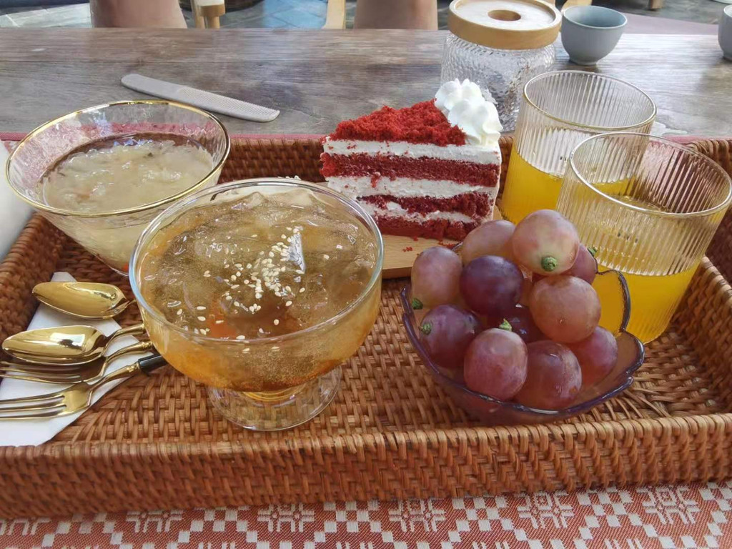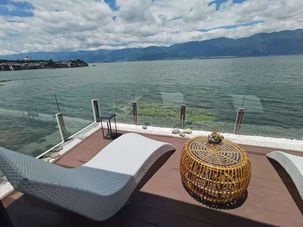 12:30到达水明漾客栈(位于洱东),本计划住两天,但由于马虎定错了一天时间,老板也非常爽快地退了全款。订的他家的无敌海景大套房,推开房门看到石子小路连接的一线临湖的阳光房和露台,抑制不住的惊喜,两家人当即决定这么赞的风景,不兜景点,吹风看书、聊天吹到第二天中午,16点的下午茶送到房间也是非常丰盛。