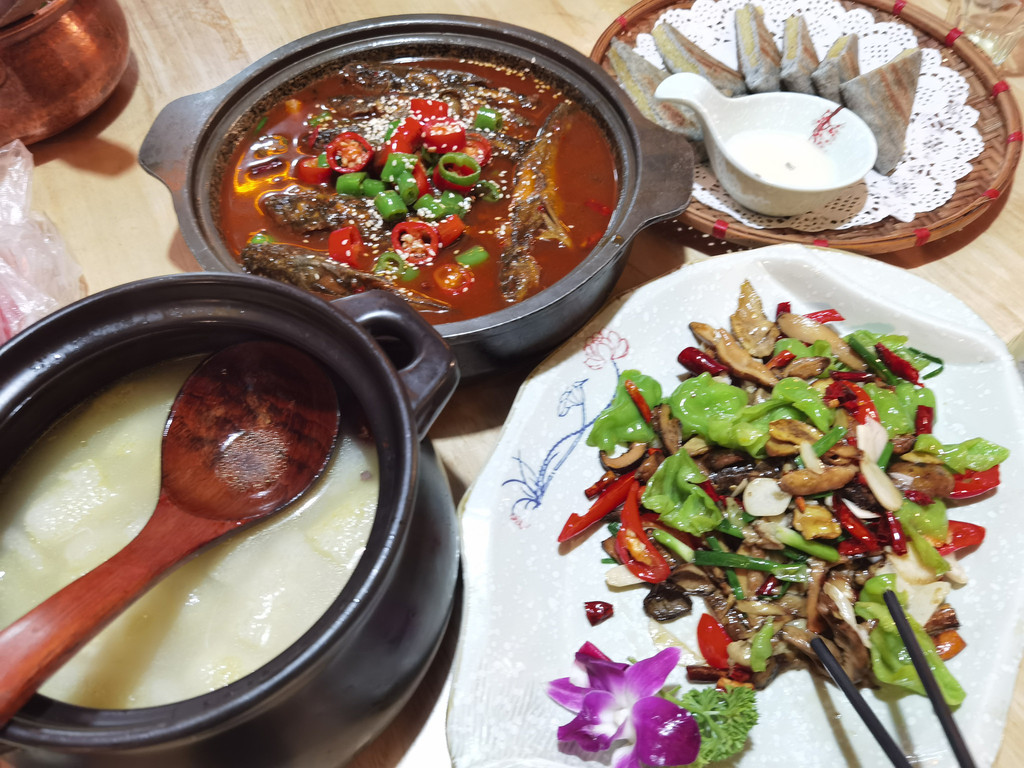 中饭:大理段公子:味道不错,菜式花样也很多很新颖,是几天来最贵的一餐,也就500+元。