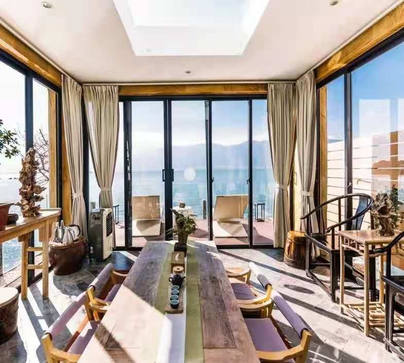 6:00订了闹钟,拉开窗帘躺在床上,对着落地窗等待日出;6:50心满意足继续回笼觉,在洱海生活节奏不知不觉就慢下来;