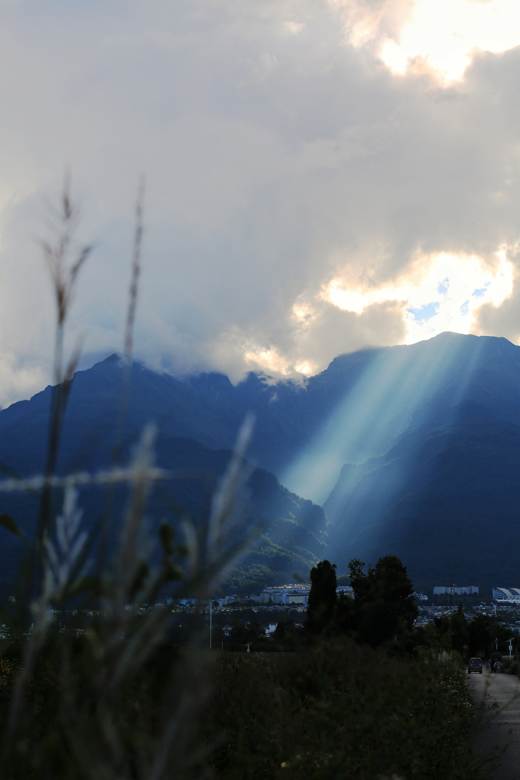 国庆当天下午,去了崇圣寺三塔,美美地拍摄了一组大理三塔美景。具体详见另外一篇图文介绍:《大理5A级崇圣寺三塔,国庆游玩纪实(附三塔美照)》。返程途中,偶遇苍山落日余晖和大理大学网红公路,走出家门遇见大理不一样的美景,真是幸运无比啊!