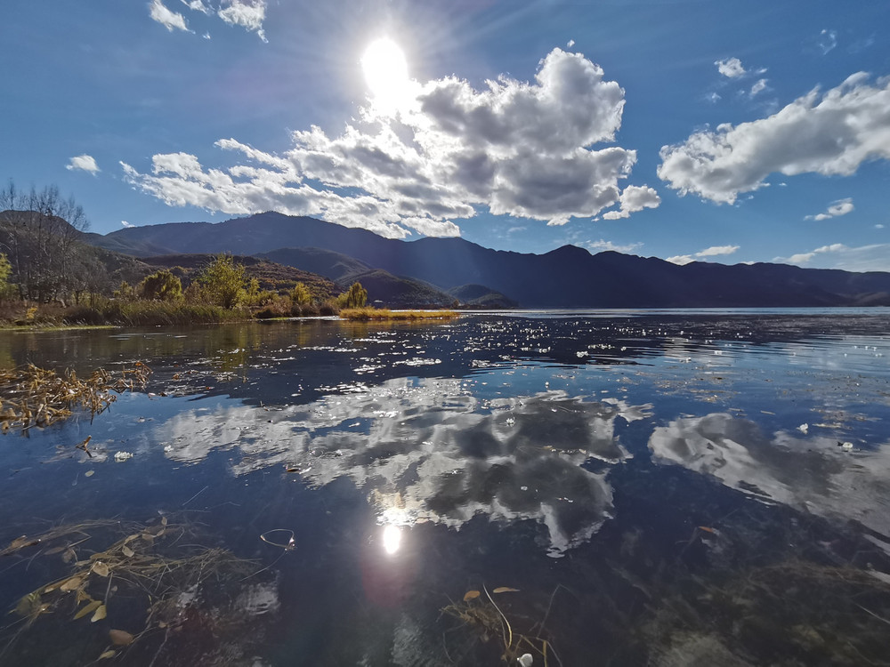 徒步环湖、包车环湖都是可以的,徒步可以更深入地欣赏到美景,包车更轻松省力。泸沽湖景区内自行车租赁处很多,推荐在情人摊、泸沽湖镇、草海,走婚桥一带骑行,这一段路途较为平坦,骑行比较轻松。顺时针环湖线路:大落水码头→里格码头、里格观景台→女神湾→草海→走婚桥。泸沽湖景区弯多坡陡,无论哪种出行方式都要注意慢行。泸沽湖蚊虫较多,建议带驱蚊药。因为我们的行程比较紧,所以包车环湖比较适合我们。之前在车上跟一对夫妻约好一起四个人包车环湖,包车师傅是一位五六十岁的摩梭大叔,很热情,一上车就送给我们每人一个苹果。因为泸沽湖是四川和云南共享的,四川有疫情,我们都怕健康码变黄,所以就让师傅不要去四川界了。师傅先带我们去了一个码头坐船,结果连船夫都不在,只好再继续去其它码头,泸沽湖四周有不少村子,每个村子基本都有自己的码头。我们后来在靠近四川界的一个村子坐的船,,一般每条船6-8名乘客。给我们划船的是一位淳朴的摩梭大姐,她带着她第一次出来锻炼的老三还有两个别人家的孩子来划船。不一会儿船上的小朋友往湖里扔小鱼干,海鸥成群结队地被吸引了过来,泸沽湖水清澈见底,湖面在阳光的照射下就像一面镜子,太阳和云朵都倒影在水里,还有海鸥、野鸭,美不胜收。从大姐的口中得知,泸沽湖跟长江一样,也开始了十年禁渔,野鸭是从西伯利亚飞过来的,野鸭一看到人就会逃开,海鸥不太一样,看到吃的,它们会被吸引过来,不怎么怕人。草海到了这个季节没有之前好看了,不过黄绿相间的草海别有一番风味。泸沽湖上比较有名的有王妃岛、里务比岛、里格半岛等。王妃岛属于四川界,现在湖面上也不能随便越界划过去了。在泸沽湖上还可以看到远处的女神山,泸沽湖的摩梭族每年农历七月二十五日都会举行转山节,这也是摩梭人一年中最盛大的节日。一路上听着摩梭大姐对泸沽湖的介绍,一路欣赏着美景,大姐还应我们的要求唱了一下他们当地摩梭人的歌曲,她还免费送我们一包小鱼干喂海鸥,大家都觉得这次的船坐得很开心,感受到了摩梭人的淳朴和热情。