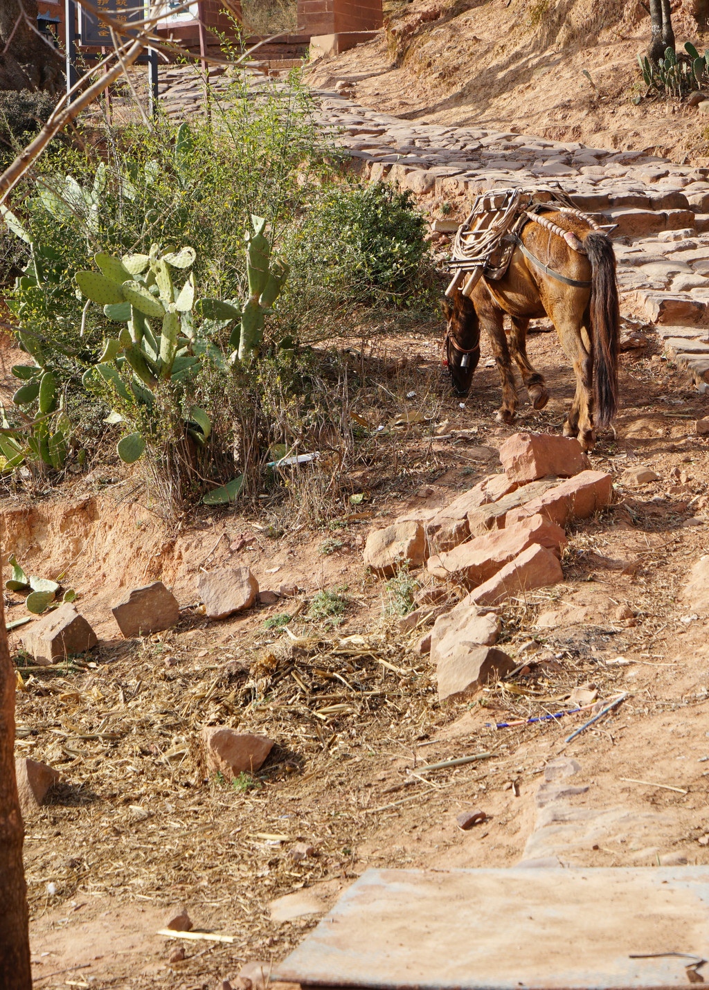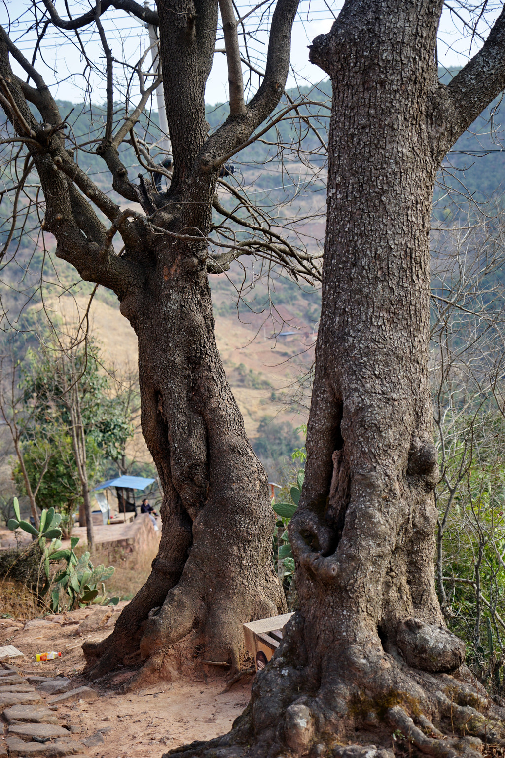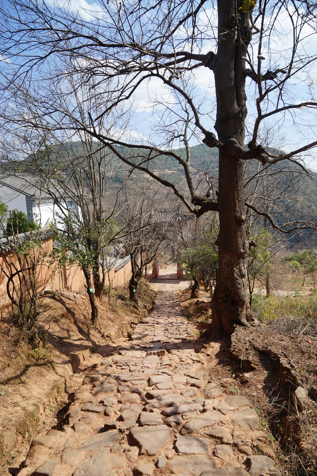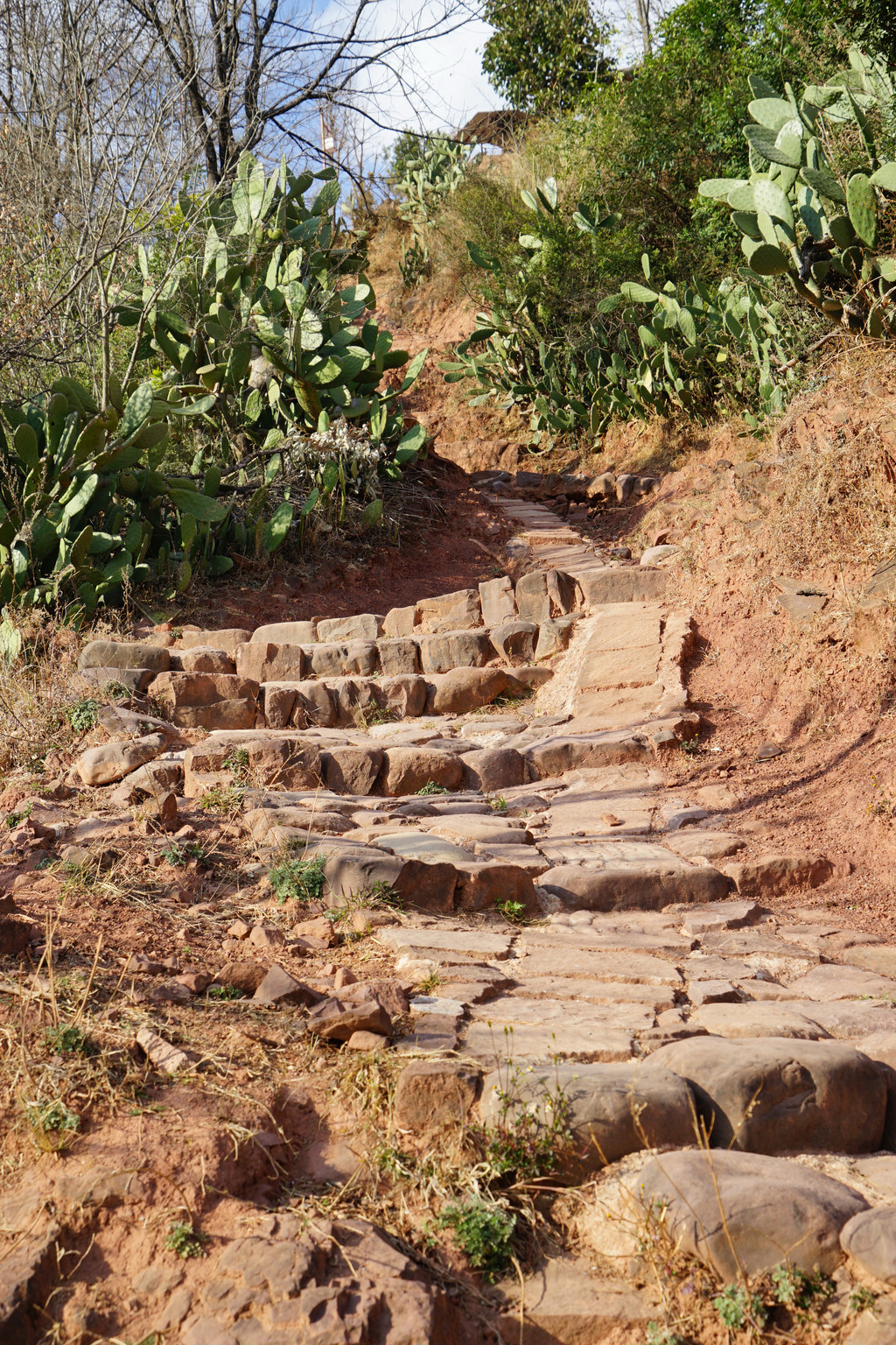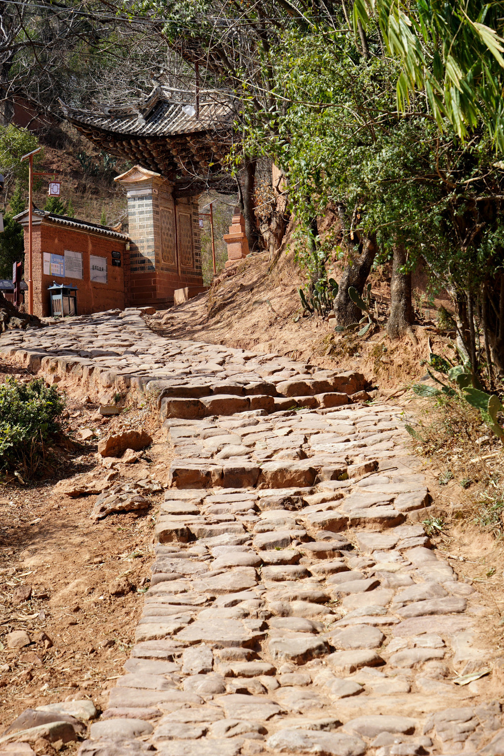 三三二二的大树相伴古道,一丛丛的仙人掌相拥石阶。