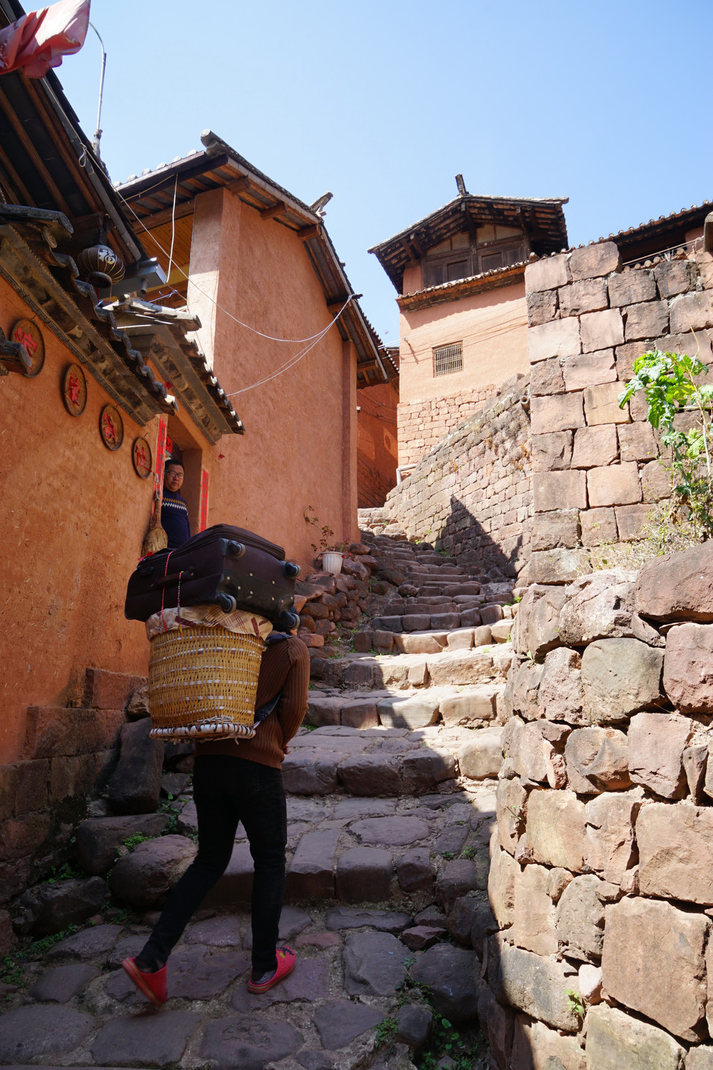 客栈老板娘来帮助背驮行李,不然就只能选择下榻在山下农家。