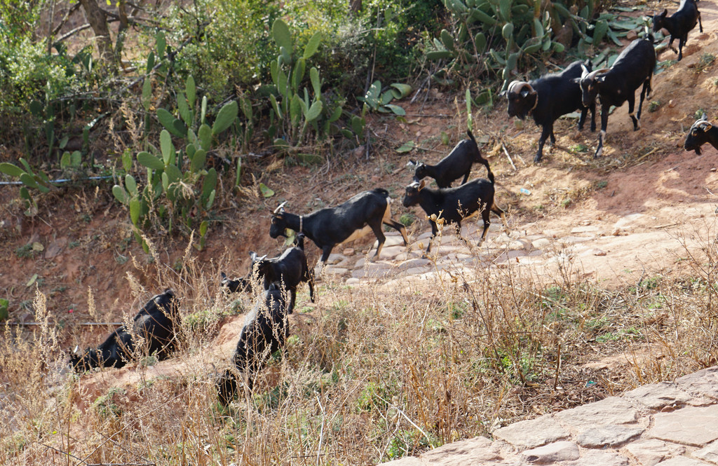 时不时地牲畜挡道。