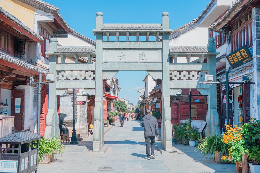 喜洲古镇坐落于大理古城以北18公里,这里东临洱海,西靠苍山。走进喜洲古镇,白墙灰瓦里藏着有关大理的闲适,缓慢时光在这静静流淌,喜洲古镇像一座古朴典雅的城池,更像是一座巨大的民居建筑博物馆,精致的宅子,大气典雅的飞檐、斗拱,满眼精细彩绘的花纹和石雕,凝聚着白族人智慧的结晶。