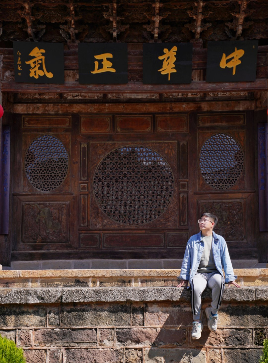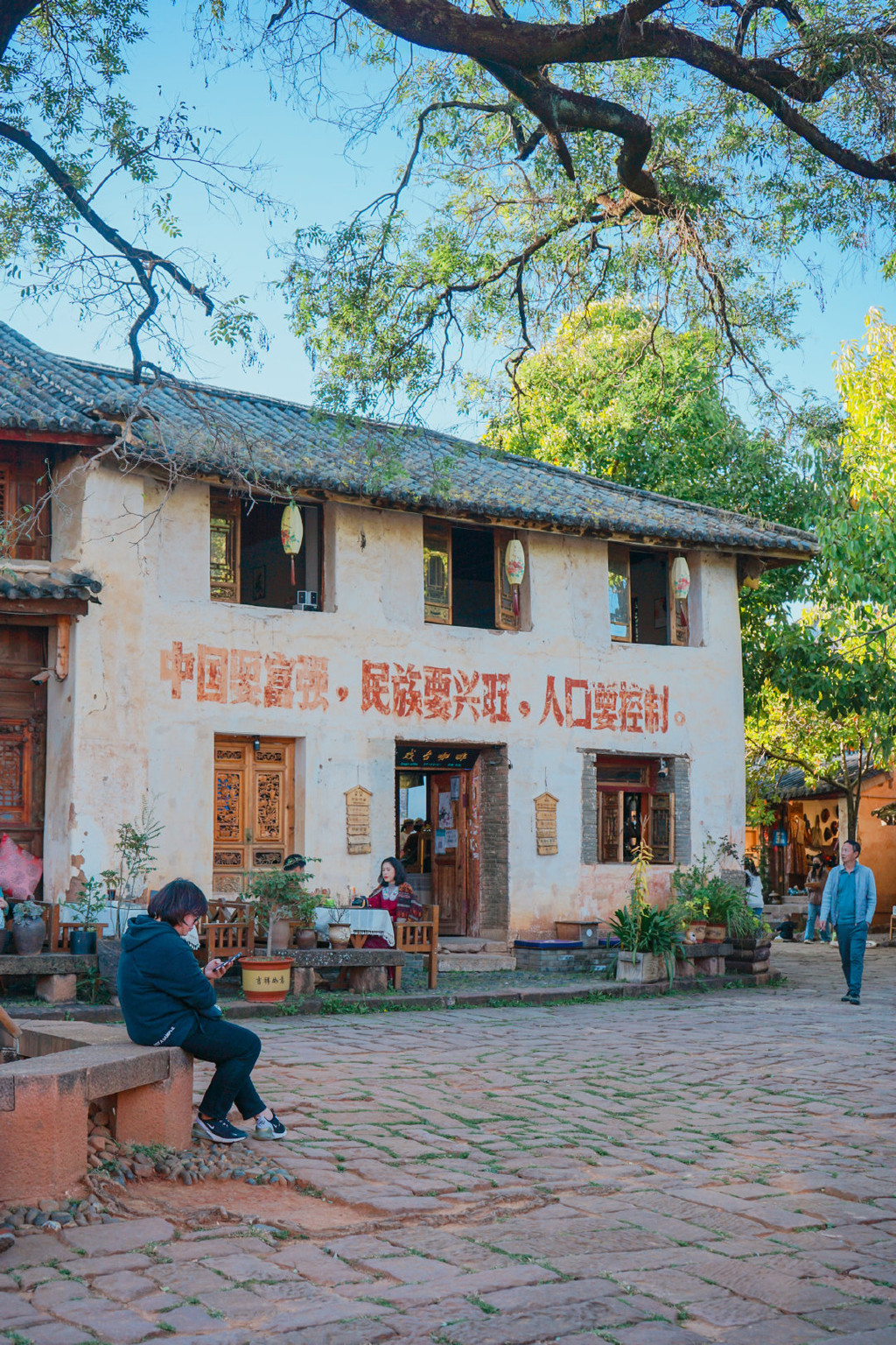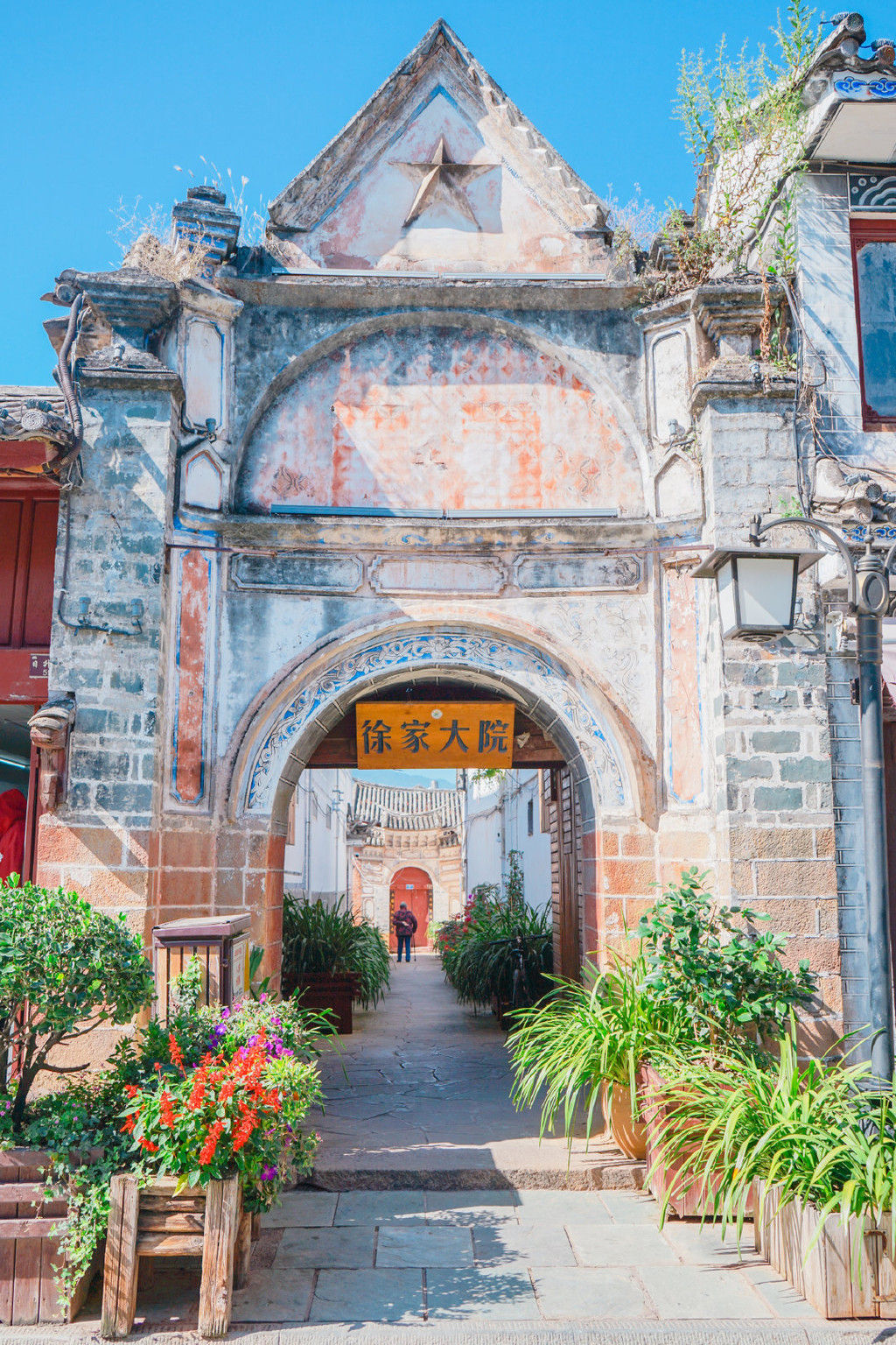 转角楼这是标志性建筑圆角楼,只要来喜洲的人都会来这里打卡,四方街是喜洲镇的中心,也是最热闹的地方,脚下是青砖铺成的小路,房屋墙体大多都掉了皮,露出泛黄的土坯,屋顶长满荒草,木门也都褪色陈旧,岁月总是留下痕迹,让后人寻觅,偶尔会有一两位身穿民族传统服饰的老人推开陈旧的木门走出来,目光平静或满面笑容的看着你,那感觉,就如同包裹着古镇的温暖阳光。