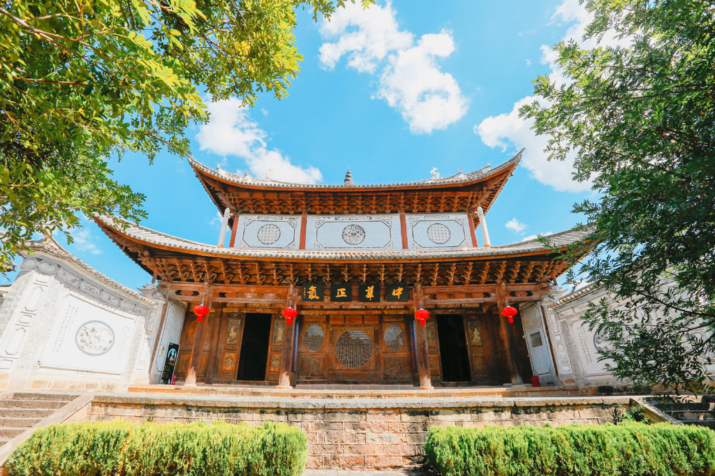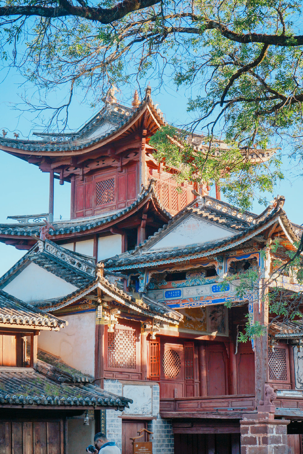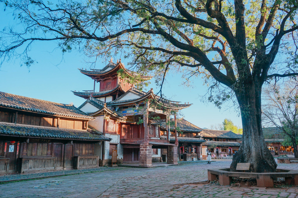 沙溪曾是茶马古道上的重要驿站,且保留了原始的建筑风貌,整个街面用红砂石板铺成,中心有棵参天老树作为这里的独特地标,古戏台和兴教寺遥相呼应,其高超的建筑手法令人叹为观止。整个四周商铺林立,三条古巷通往四面八方,每到街市热闹非凡。