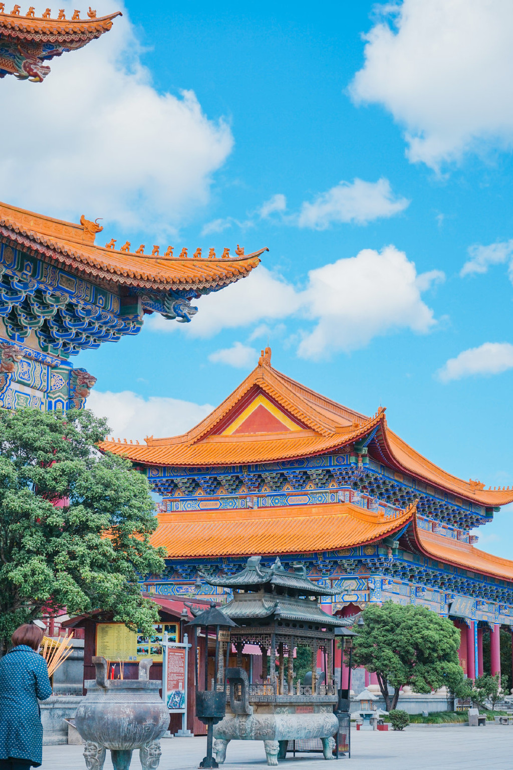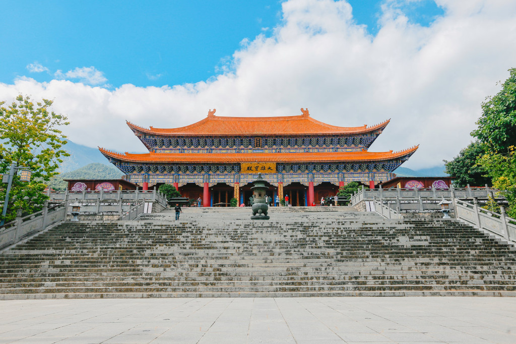 其实想看崇圣寺先要看三塔,走出景区前半部分,后景区就是恢复重建的,被誉为汉传佛教第一寺的崇圣寺,进了佛都大门后就是放生池,依次穿过天王殿、弥勒殿、十一面观音殿,每一处都颇为震撼,而最为震撼的当属大雄宝殿了,重檐庑殿顶九开间,三层合基,殿面阔51.7米,高26米,是全国佛教寺院中体量最大的大雄宝殿。而且殿内佛像是按《张胜温画梵像卷》中的“释迦摩尼佛会图”布局的。