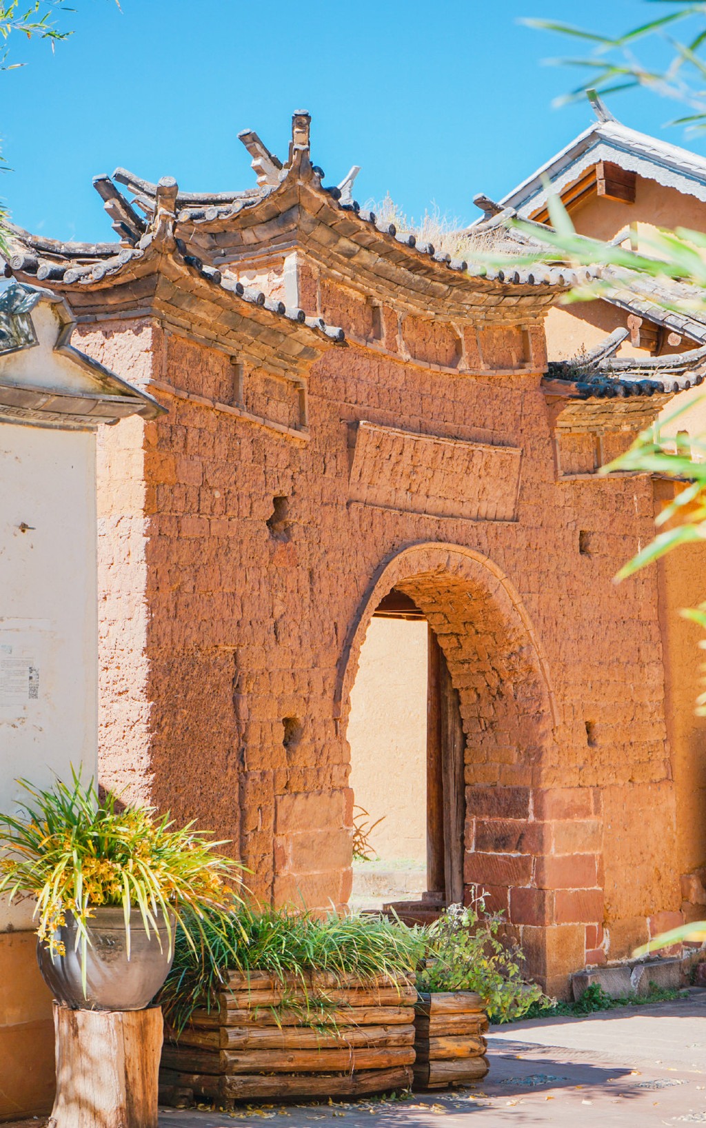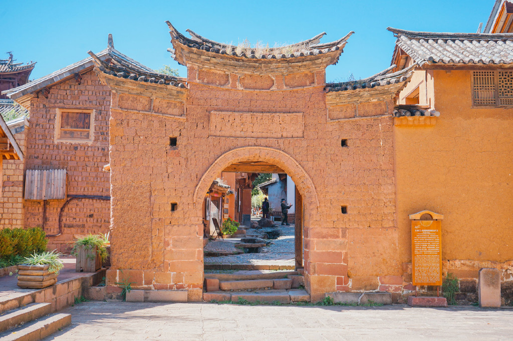 用黄泥土坯筑成的寨门,当地村民称为“街子门”,向人们真实地呈现了古市西藏、滇西北地区的茶叶、食盐供给的集市城门的本来面目,路过的马蹄声仿佛能够听见历史的回音,像是穿行在神秘的古道。