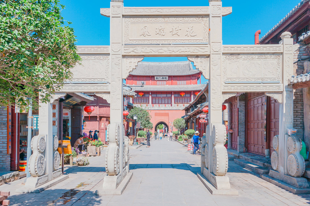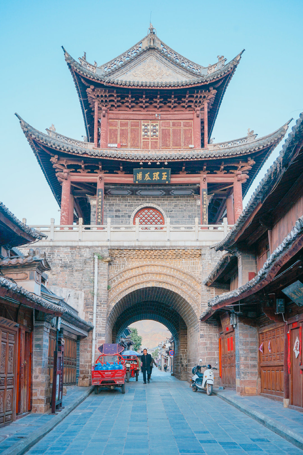 600多年前建城时候的棋盘格局,古城至今依然保持较为完整。城池布局精湛,建筑结构严谨,被誉“中国保存最完好的明清古建筑群之一”,昔日拱辰楼上所书“魁雄六诏”,彰显着古城的不凡气度。
