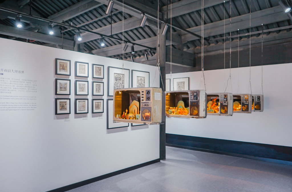 用五台老式电视机演绎的大理五部剧“梵僧点化细奴逻”,“祭铁柱”,“火烧松明楼”,“天宝战争”,“苍山会盟”。