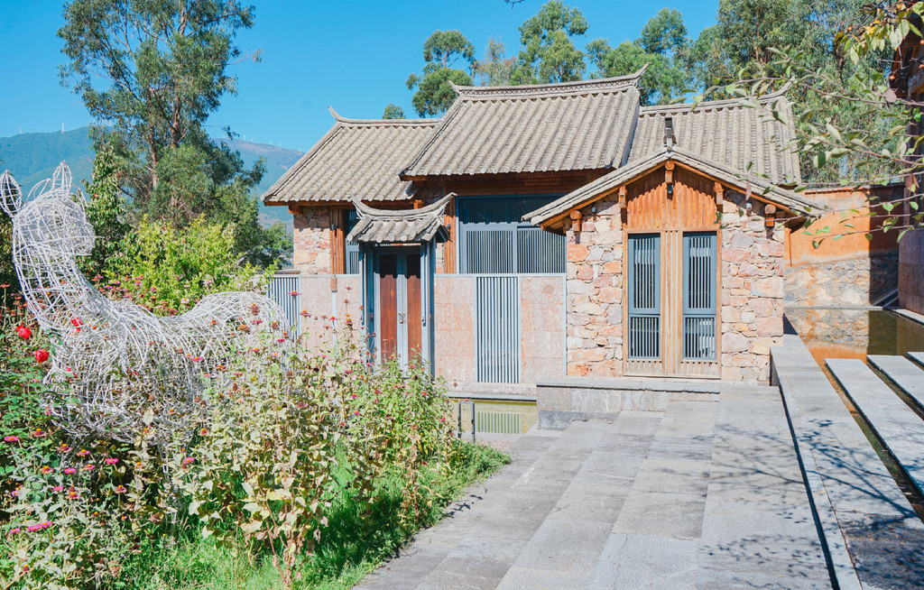 在寺登街上走着,看见一家店门口有两只别具一格的小木马,便吸引我们掀开帘子进店里一探究竟。这家名为“初见沙溪”的餐厅。餐厅是在沙溪众餐厅中味道数一数二的白族风味菜馆,那里的火腿特别好吃,每道菜都很可口。老板是个很有故事的男人,养着一只温顺友好的大金毛。要是遇到老板有空,和他喝杯茶,聊聊天,仔细听听这位热爱沙溪、扎根沙溪的文化人的生活理念。