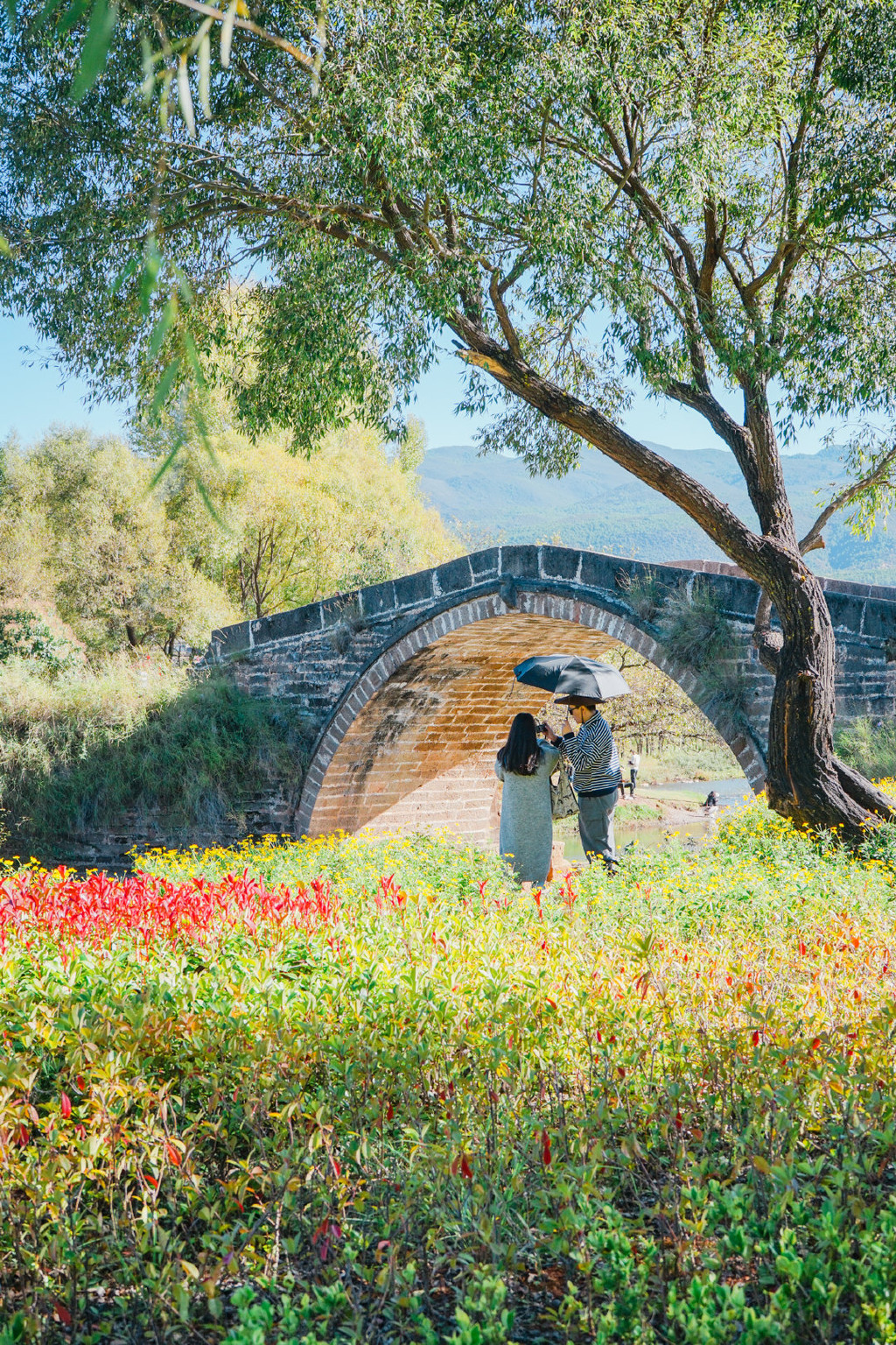 当晨雾迷绕在整个古镇的时候,我站在桥下看背篓的、赶牛的、牵马的沙溪人,看欢笑的、怠惰的、庸常的外地人,从古桥上走过,真是绝绝子。