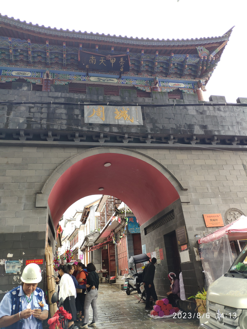 第三天还是下雨,选择了离喜洲不远的周城,周城在喜洲的北边,是扎染技术的大本营,村子里遍地都是扎染厂,在这里吃了一顿地道的当地特色美食,饭店叫霞移食悦,推荐到周城的朋友去尝试一下,酸辣鱼、炒菌子、生皮、炒乳扇、水性杨花汤等等,都很有特色,吃饱后步行穿过整个周城来到蝴蝶泉景区。