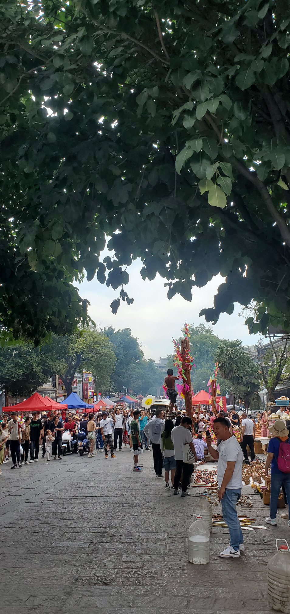 还没天黑,气氛已经上来了,每年的八月二十五是白族传统的火把节,之前已经停办了三年,今年终于恢复了。三月街的火把节其实更像是给我们这些外地游客准备的,不是那么正宗,最正宗的应该是在类似周城的这种传统村落里,不过对于我们来讲凑凑热闹已经足够了,非常充实的一天。