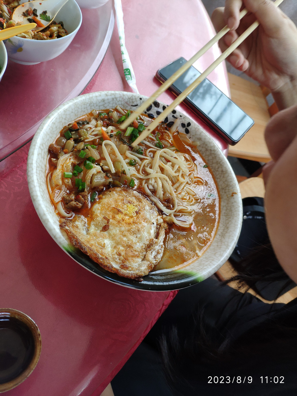 回来的路上看到一个很不起眼的小饭馆,我们决定进去一探究竟。进去之后发现是一个本地大爷自己开的馆子,其实就是自己家里支了几个桌子,跟我说我的黄焖鸡那绝对是喜洲一绝,那就安排,黄焖鸡+饵块炒肉,美味。这个店的名字叫俺家一味,可以去尝试一下,在我吃的每顿饭里这个是排第二的存在。