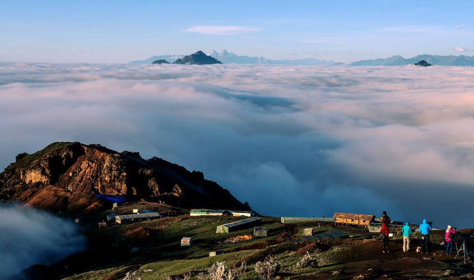 当你站在牛背山顶环顾四周,看脚下云海、云瀑,如潮水般汹涌,让人叹为观止。