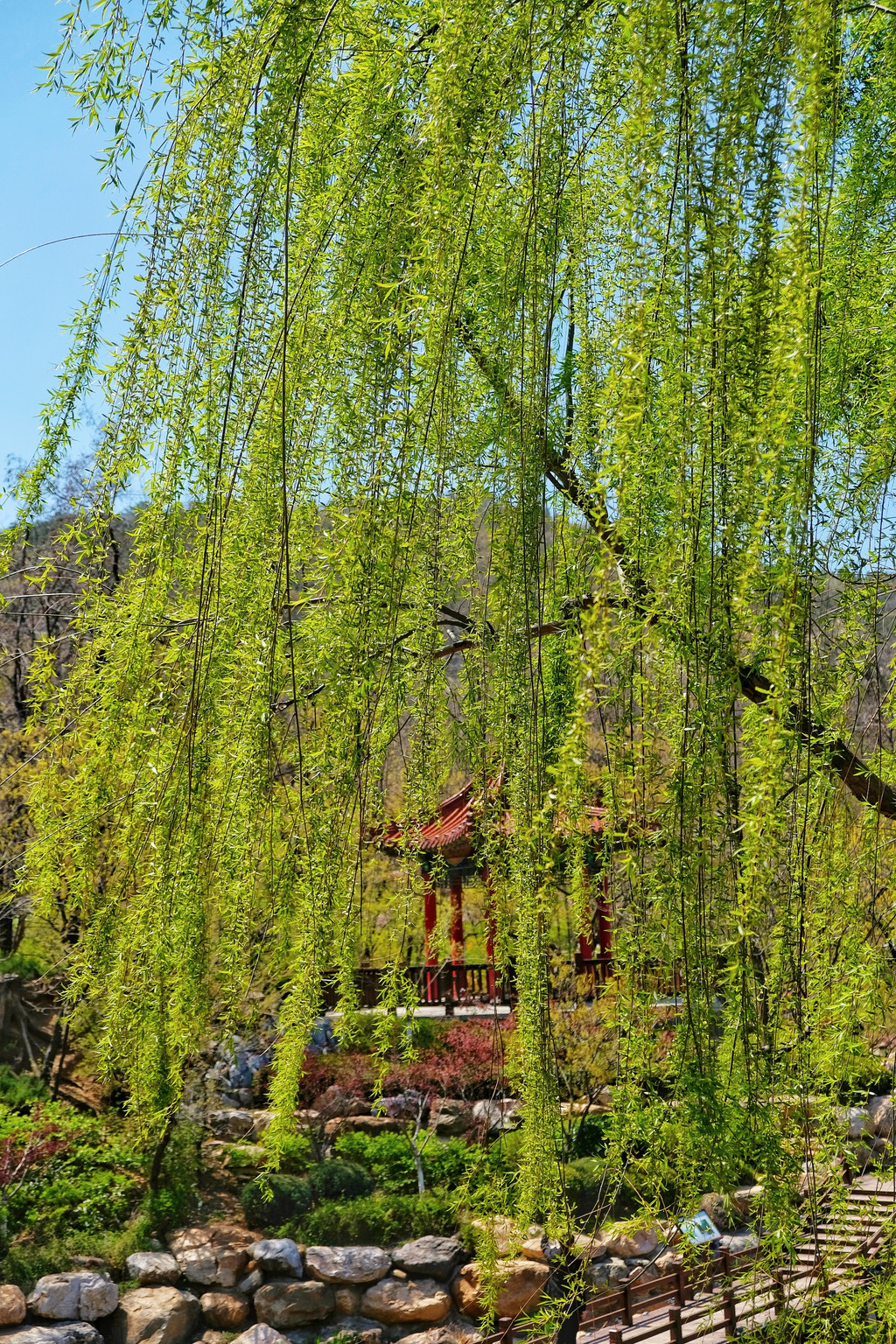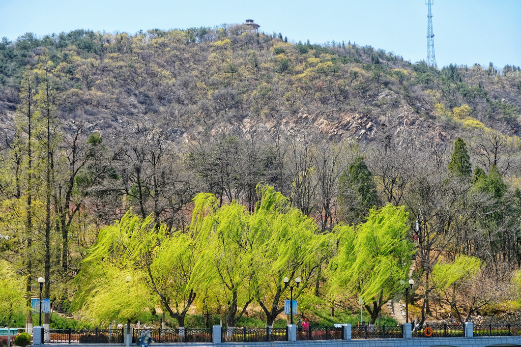 原本是来看花,冒出层层新芽的柳树成了惊喜,这是柳芽最有生命力的时候了吧,成排的柳树,摇摆着淡淡的、黄绿色的柳枝,在阳光下十分抢眼。