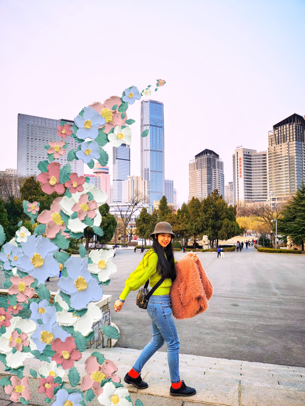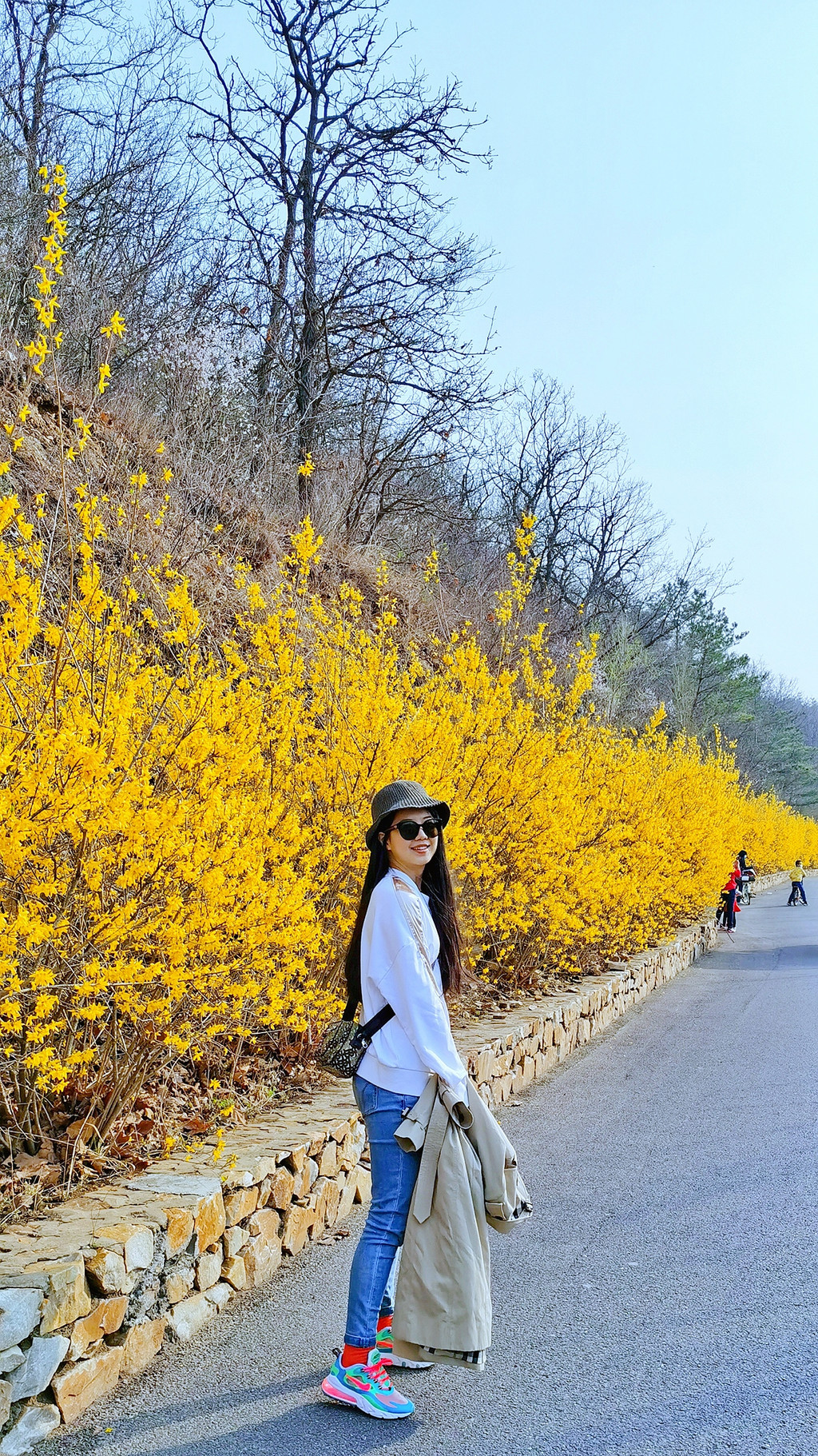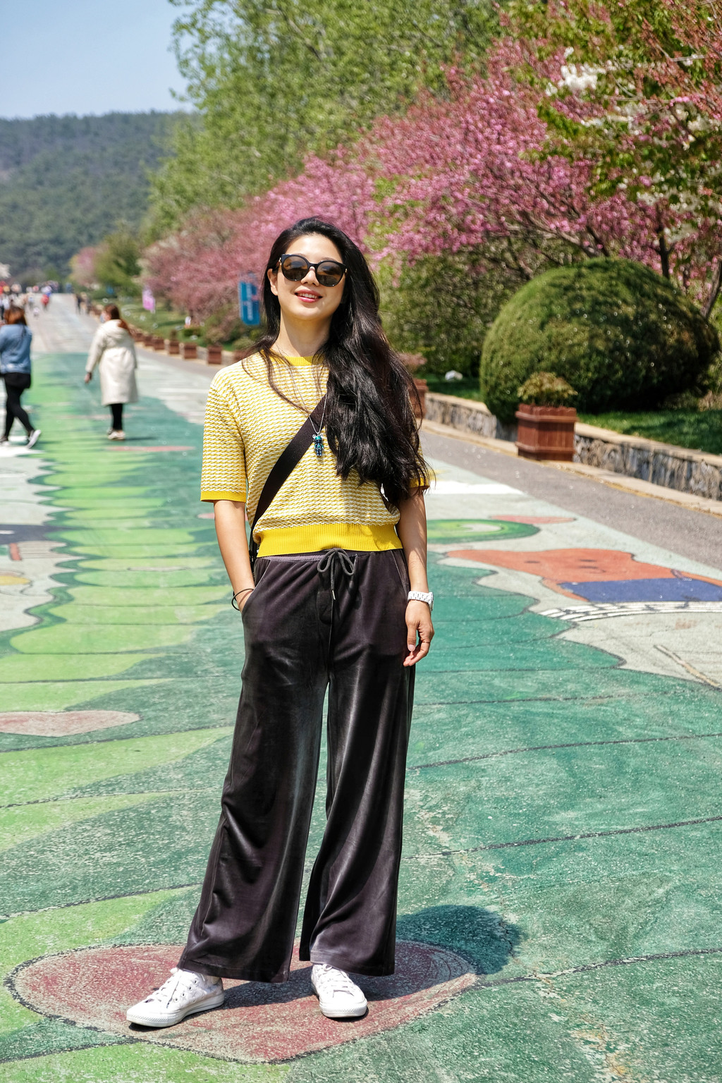 我穿了一套玫粉色的休闲装,大概是觉得樱花太好看,一定要穿的颜色比樱花还要鲜艳,才能在樱花丛中抢到些戏份。