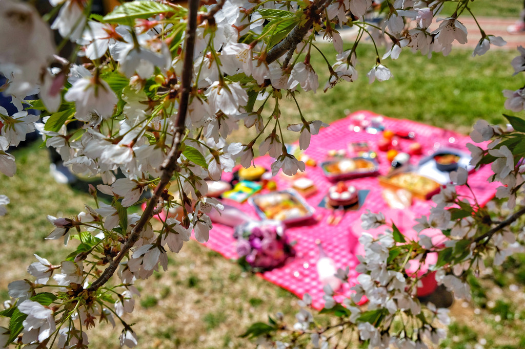 没有什么比看到大片的樱花绽放更浪漫的了,如果有,那就是在樱花树下野餐,一边吃吃喝喝一边等风来,看小小的花瓣在眼前旋转起舞,偶尔有一两片飘落在身旁的草莓蛋糕上。