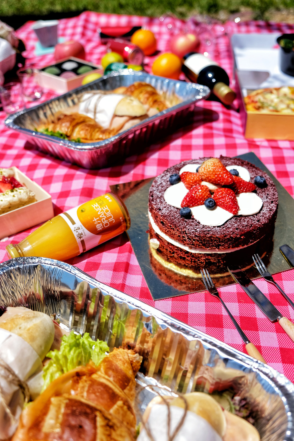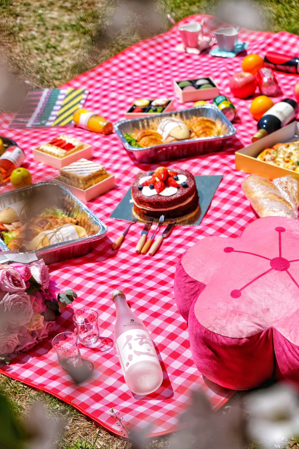 野餐布:网上有很多颜色可以选择,我选了跟樱花主题更搭配的红白格子