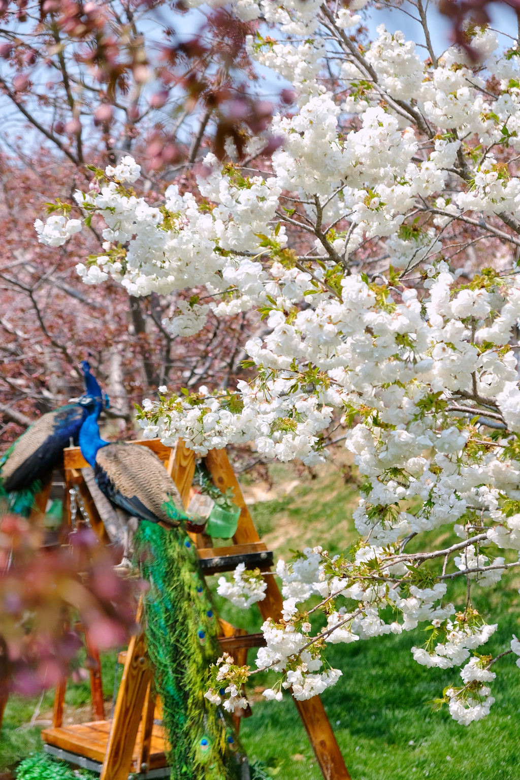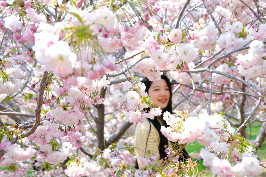 很多棵完全盛开的樱花树,呈现出拥抱的姿态,走进樱花树里,就像被春天抱在怀里,太美好!五一开始,樱花园里的多瓣樱花会陆续全部盛开,千~万~别~错~过~