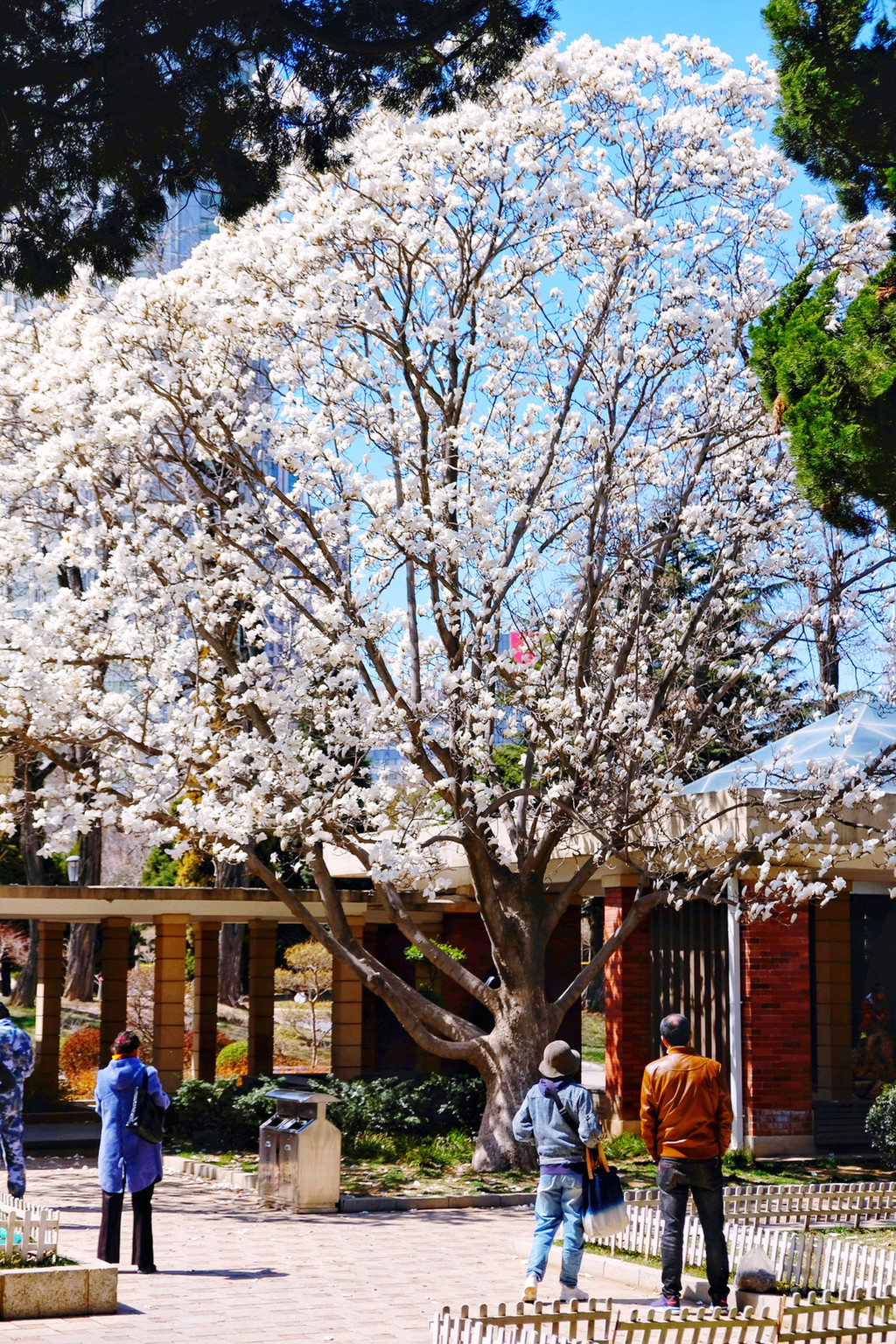 特别喜欢这张,爸妈在公园里那棵最大的玉兰树下等我。